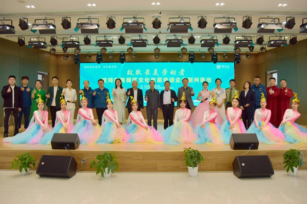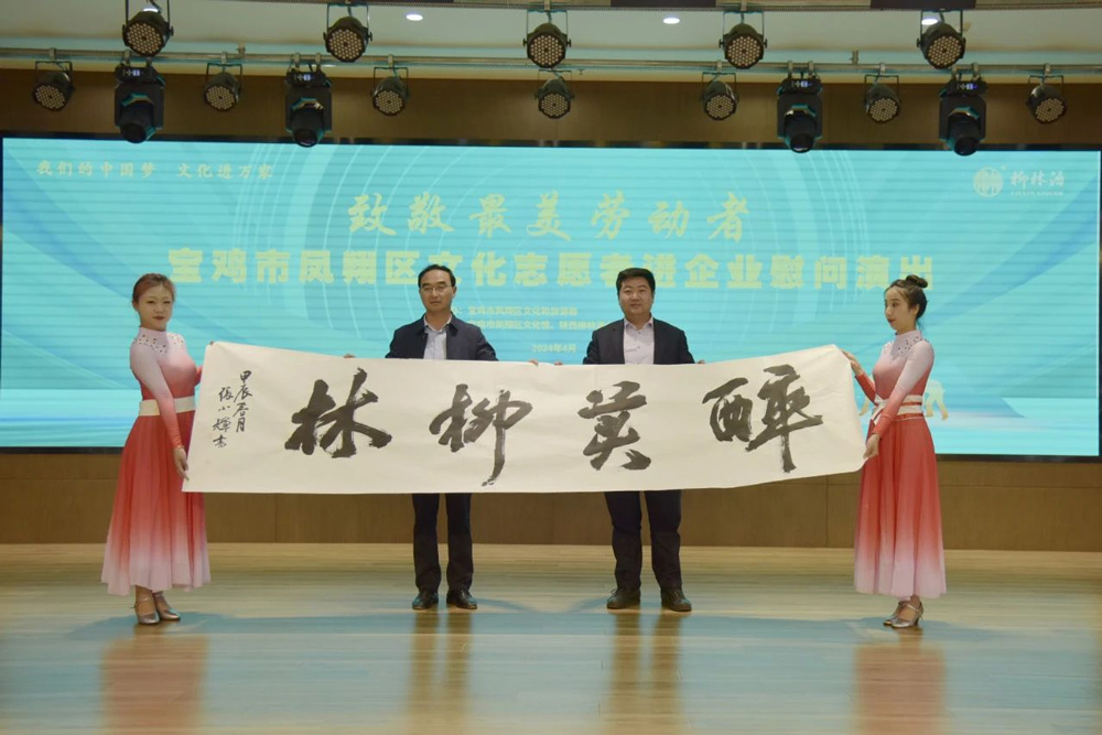 在五一国际劳动节来临之际,4月30日下午,由凤翔区文化旅游局主办、区文化馆承办的“凤翔区文化志愿者进企业慰问演出”走进开心体育app,为广大职工带来丰富多彩的文艺演出。凤翔区文化和旅游局局长石周晔、区文化馆馆长吕忠强以及柳林酒业集团总经理周峰等公司领导和员工代表200余人观看演出。